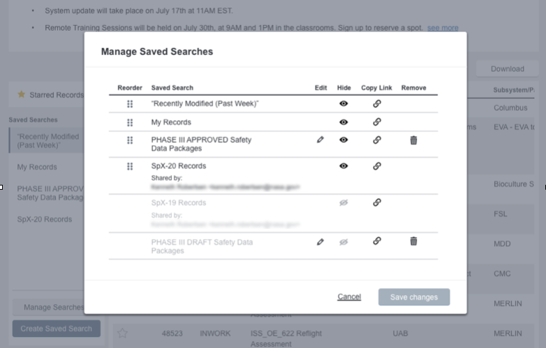 After synthesizing key research insights and running many design concepts by our developers to keep scope in check, we landed on a design that would expand the existing “saved search” infrastructure utilized by all applications. This would minimize the need for novel development while leveraging features that users were already familiar with, and be highly customizable both across and within applications. When users navigate to a homepage, they’re greeted with the results of a default search. This ensures that some relevant content is always shown to users, even if it’s their first time visiting the site. This default search is configurable, allowing power users to create custom-tailored views. To support this capability, we introduced a powerful new “Manage Searches” interface making it simpler to organize and share searches.